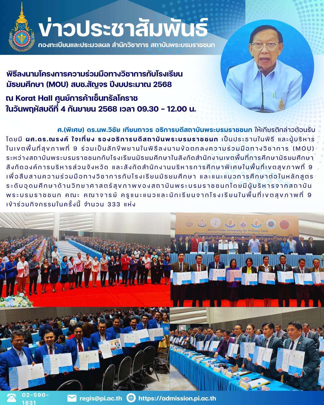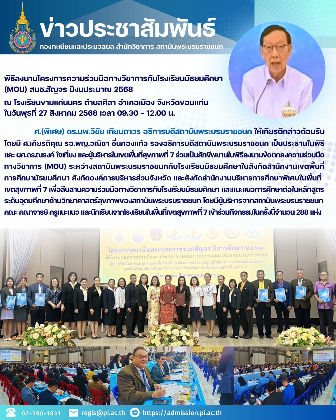 โครงการความร่วมมือทางวิชาการกับโรงเรียนมัธยมศึกษา (MOU) สบช. สัญจร ปีงบประมาณ พ.ศ. ๒๕๖๘ เขตสุขภาพที่ ๗