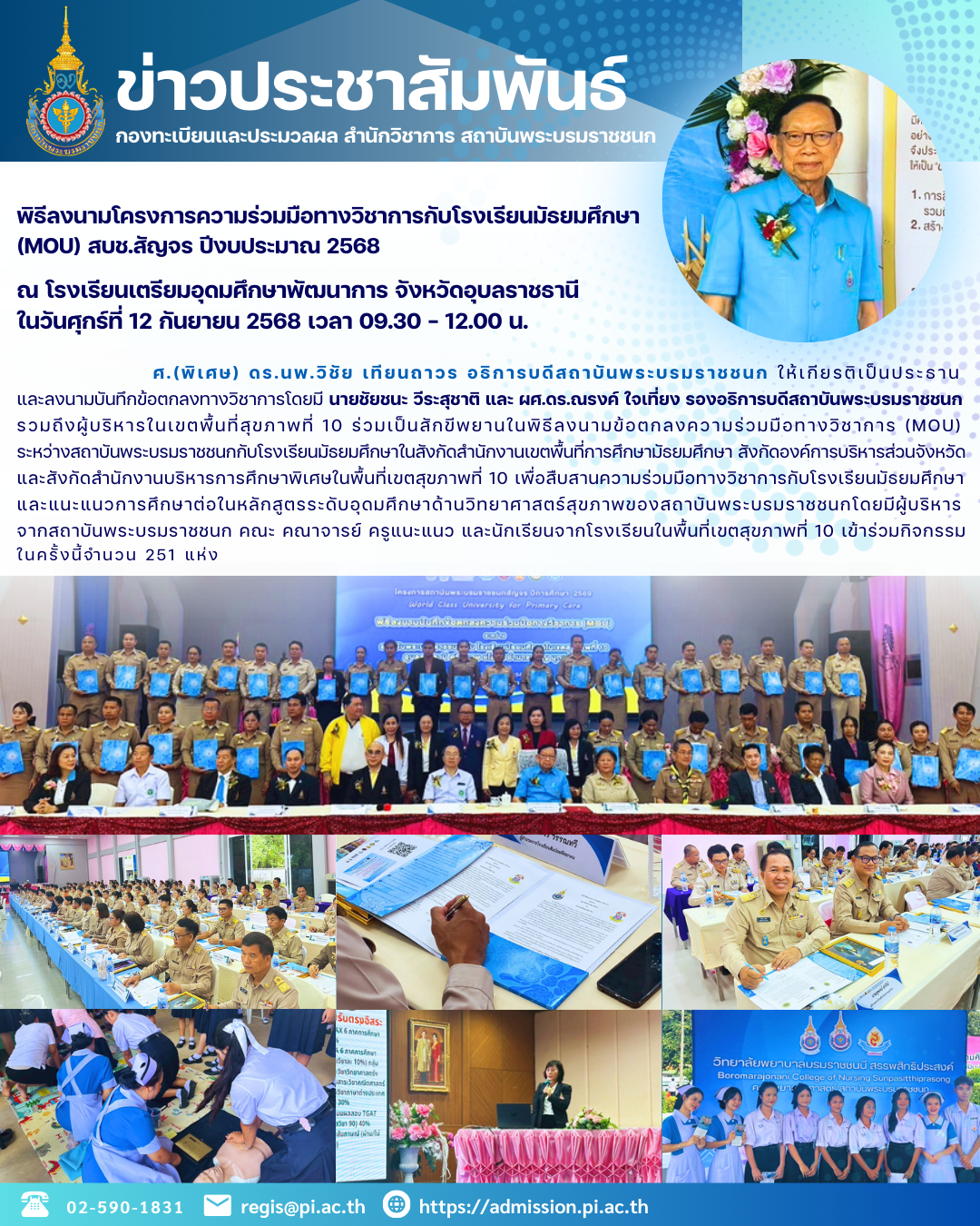 โครงการความร่วมมือทางวิชาการกับโรงเรียนมัธยมศึกษา (MOU) สบช. สัญจร ปีงบประมาณ พ.ศ. ๒๕๖๘ เขตสุขภาพที่ ๑๐