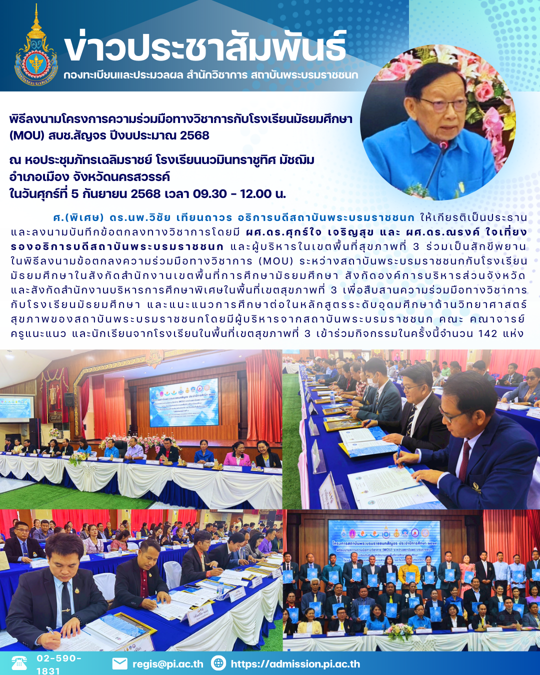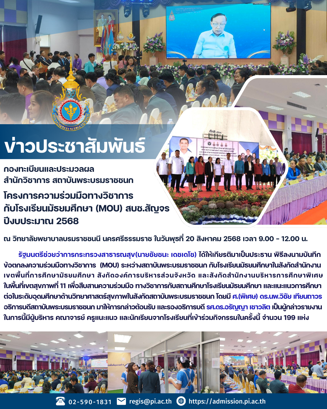 โครงการความร่วมมือทางวิชาการกับโรงเรียนมัธยมศึกษา (MOU) สบช. สัญจร ปีงบประมาณ พ.ศ. ๒๕๖๘ เขตสุขภาพที่ ๑๑