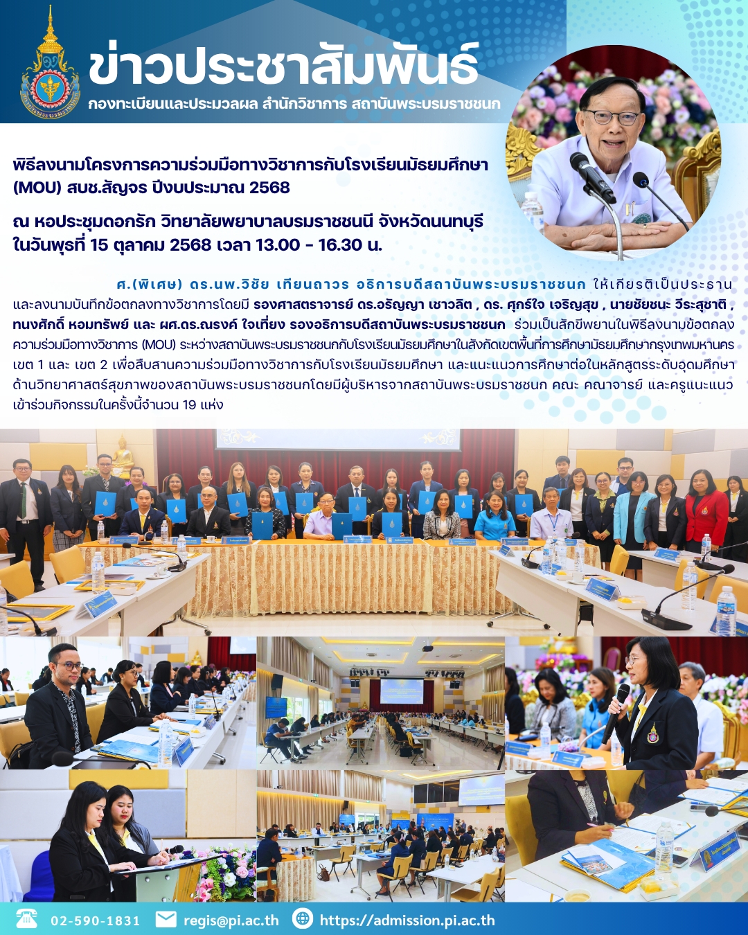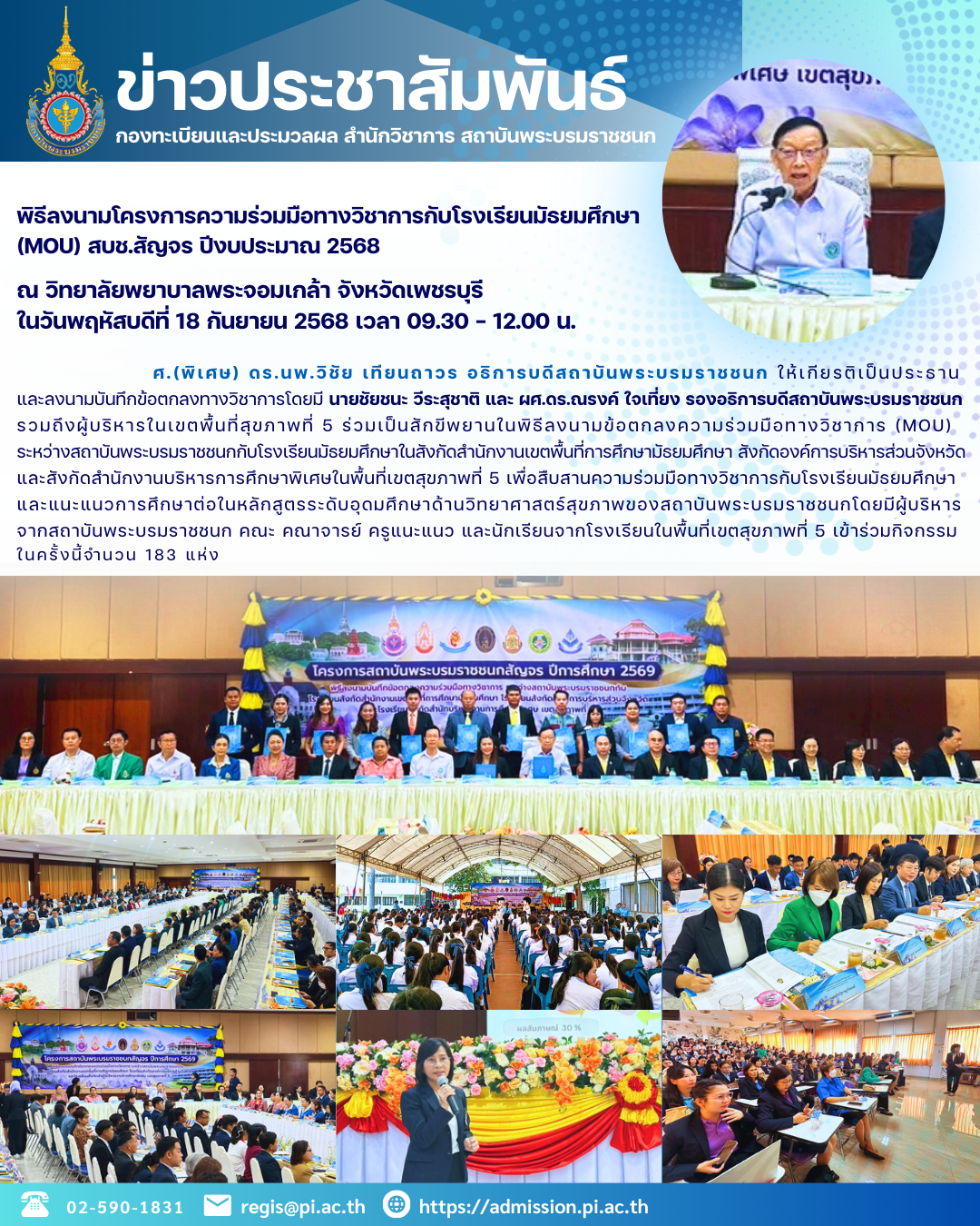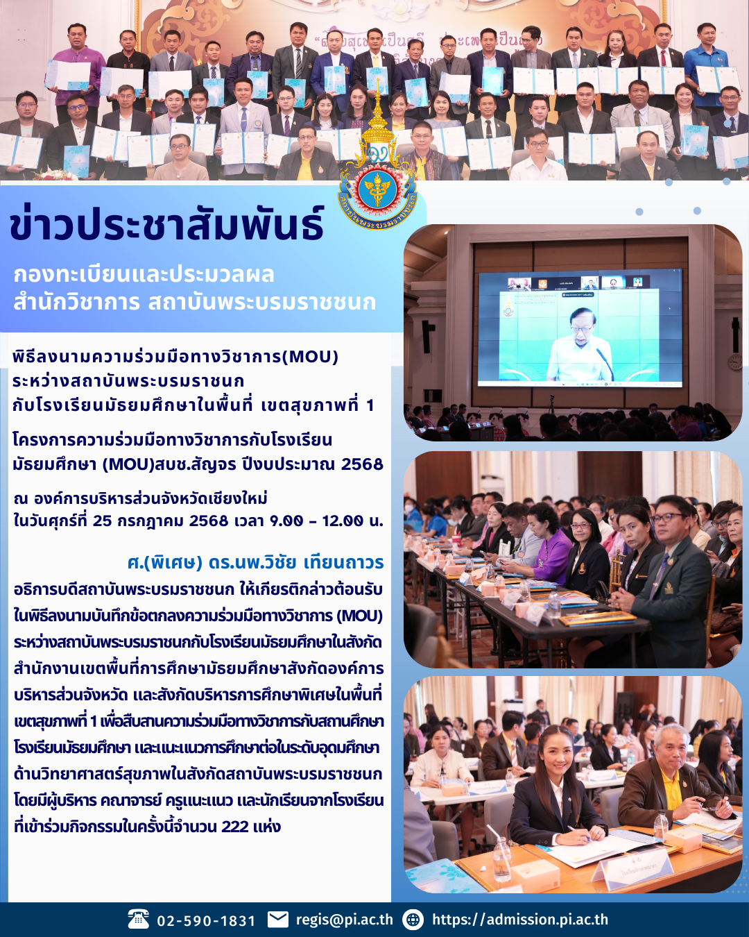 โครงการความร่วมมือทางวิชาการกับโรงเรียนมัธยมศึกษา (MOU) สบช. สัญจร ปีงบประมาณ พ.ศ. ๒๕๖๘ เขตสุขภาพที่ ๑