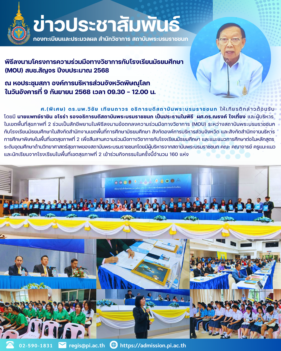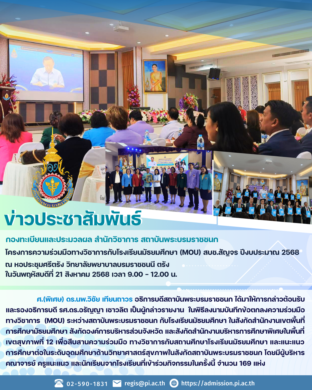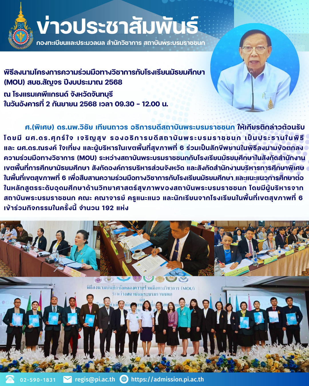 โครงการความร่วมมือทางวิชาการกับโรงเรียนมัธยมศึกษา (MOU) สบช. สัญจร ปีงบประมาณ พ.ศ. ๒๕๖๘ เขตสุขภาพที่ ๑