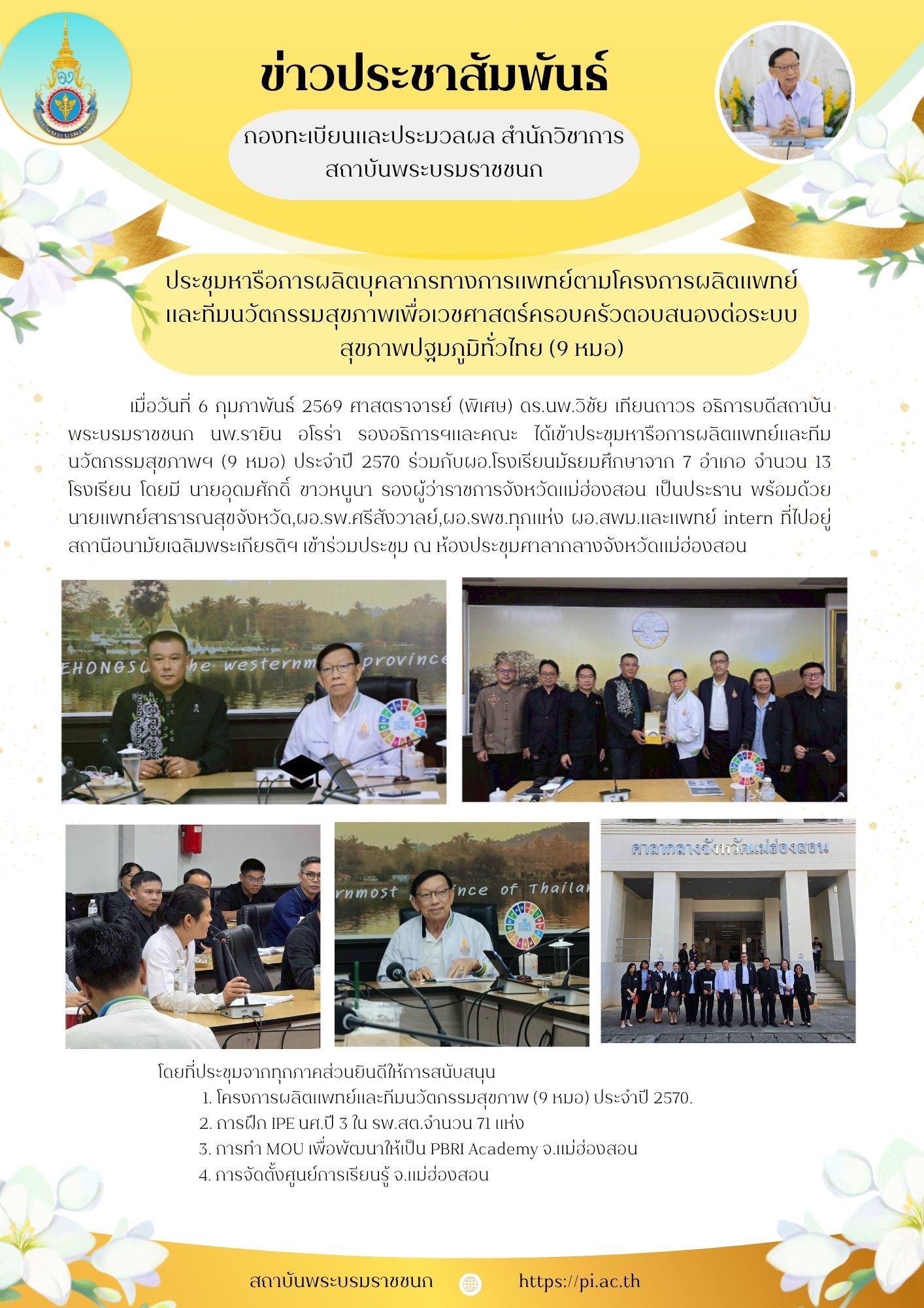 ประชุมหารือการผลิตบุคลากรทางการแพทย์ โครงการผลิตแพทย์และทีมนวัตกรรมสุขภาพเพื่อเวชศาสตร์ครอบครัวตอบสนองต่อระบบสุขภาพปฐมภูมิทั่วไป (9 หมอ)