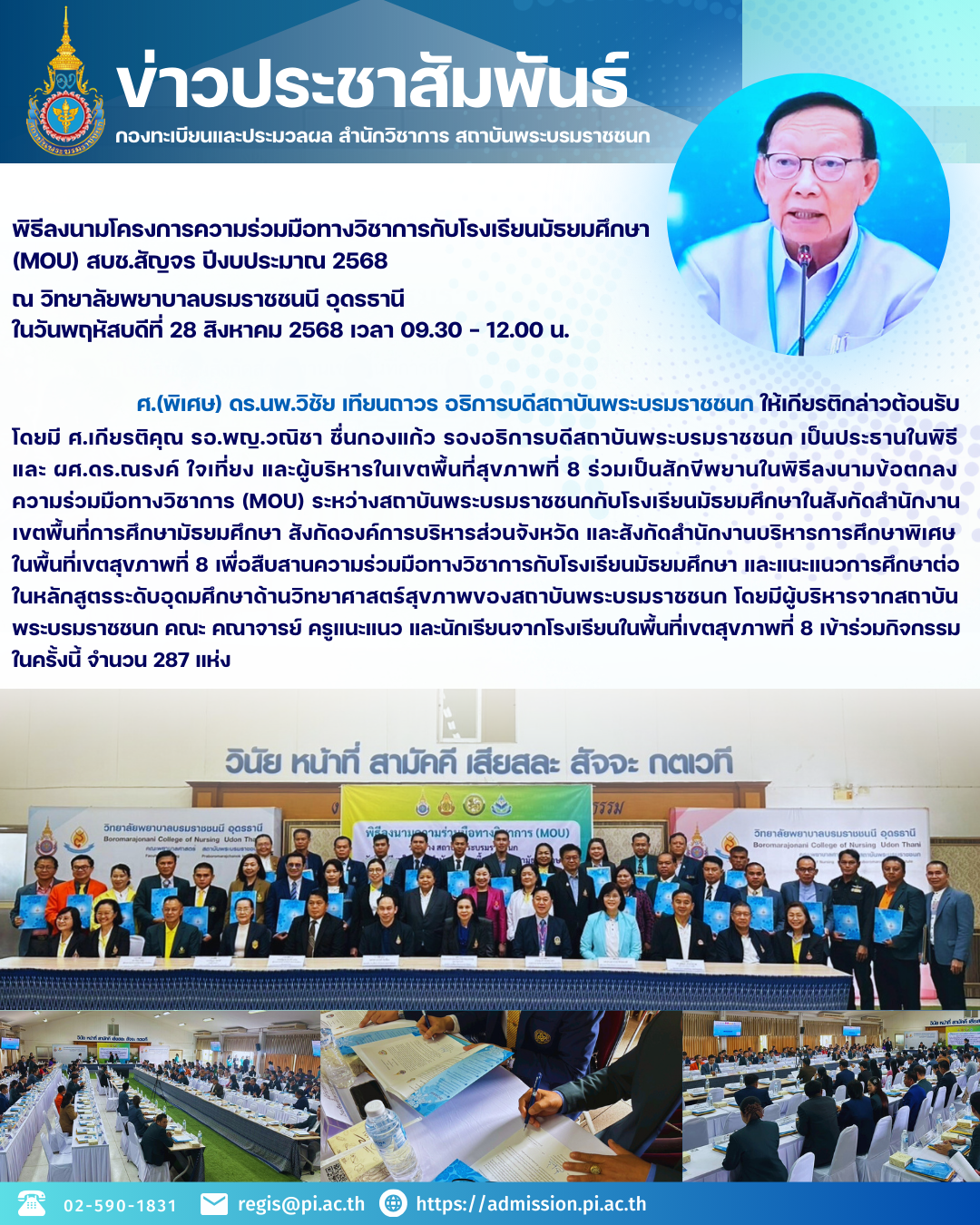 โครงการความร่วมมือทางวิชาการกับโรงเรียนมัธยมศึกษา (MOU) สบช. สัญจร ปีงบประมาณ พ.ศ. ๒๕๖๘ เขตสุขภาพที่ ๘